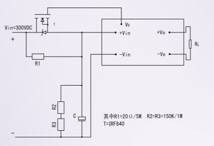 2. 高壓輸入VD端子的應(yīng)用 高壓輸入JN系列電源,設(shè)有VD子,用戶可利用V子,接成輸入浪涌電流抑制電路,可以防止浪涌電流(見圖十四), 既提高系統(tǒng)的可靠性,又使損耗降至低。
